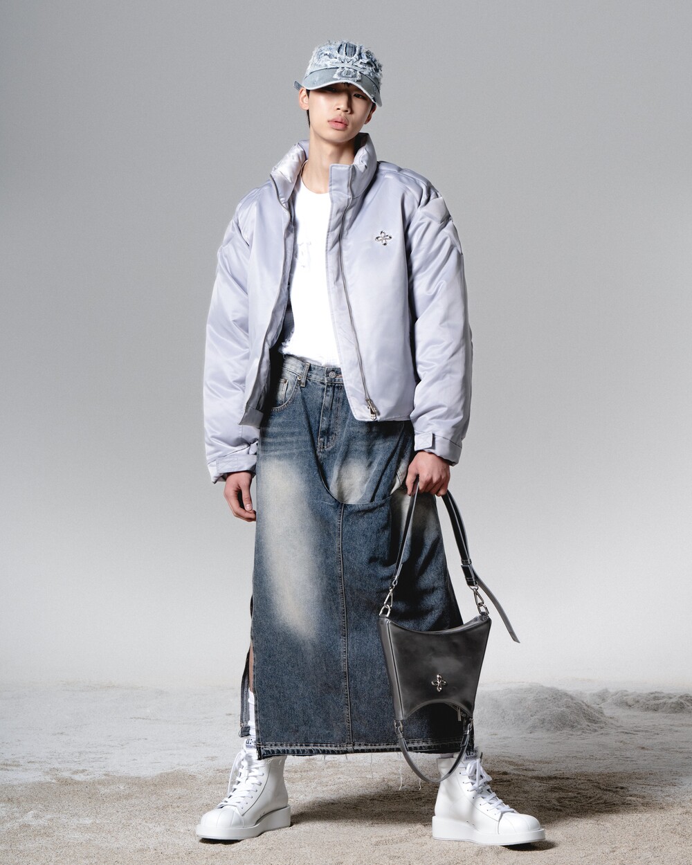 surgery in&out long skirt 'grey blue'