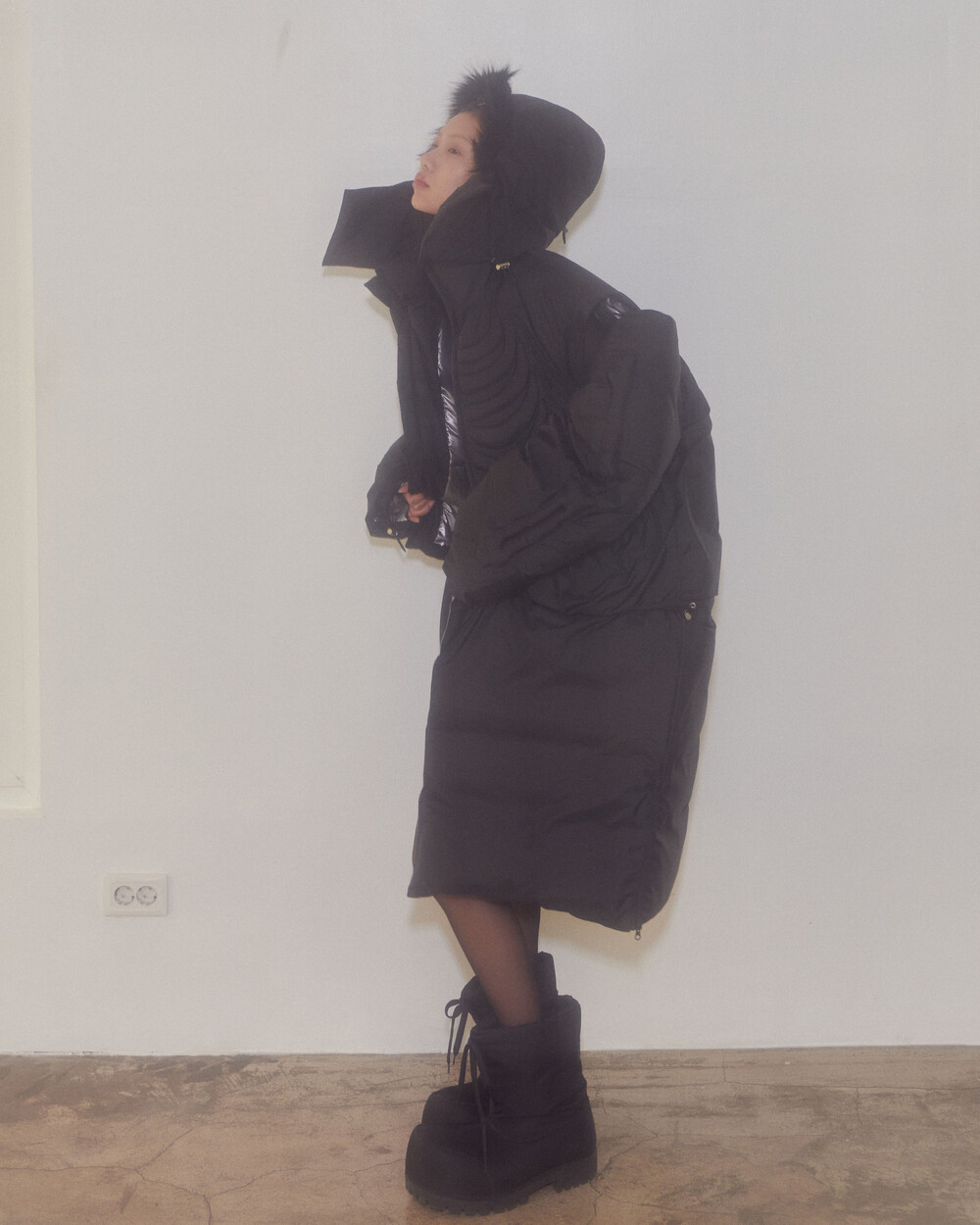 surgery bone embossing transform puffer coat 'black'