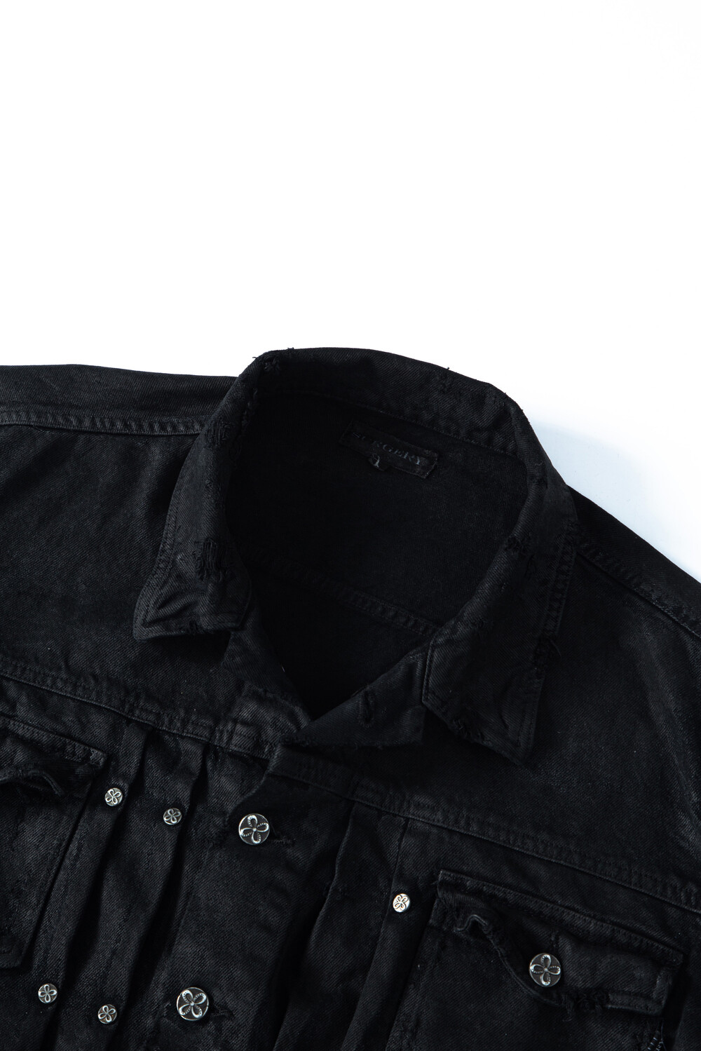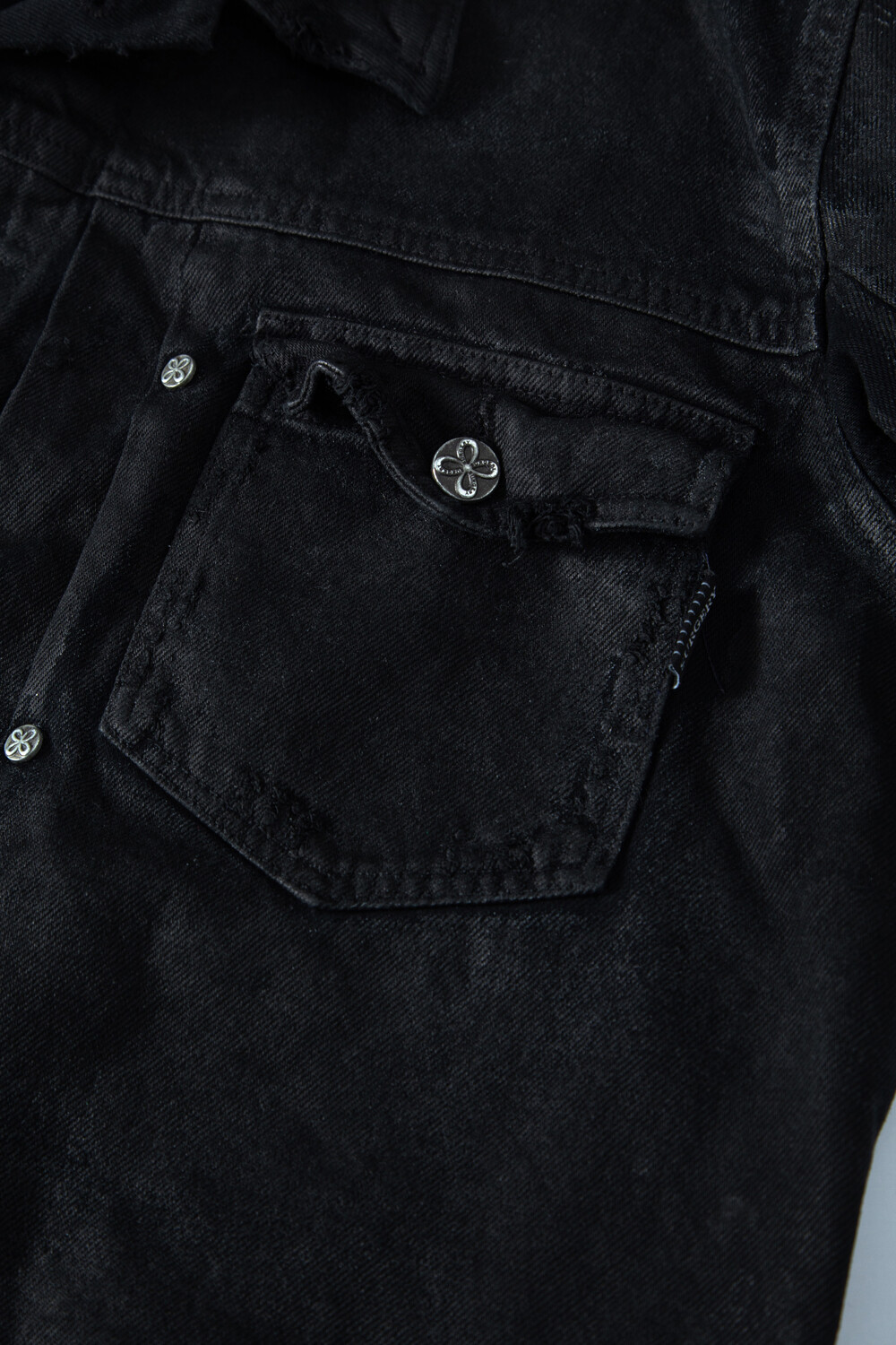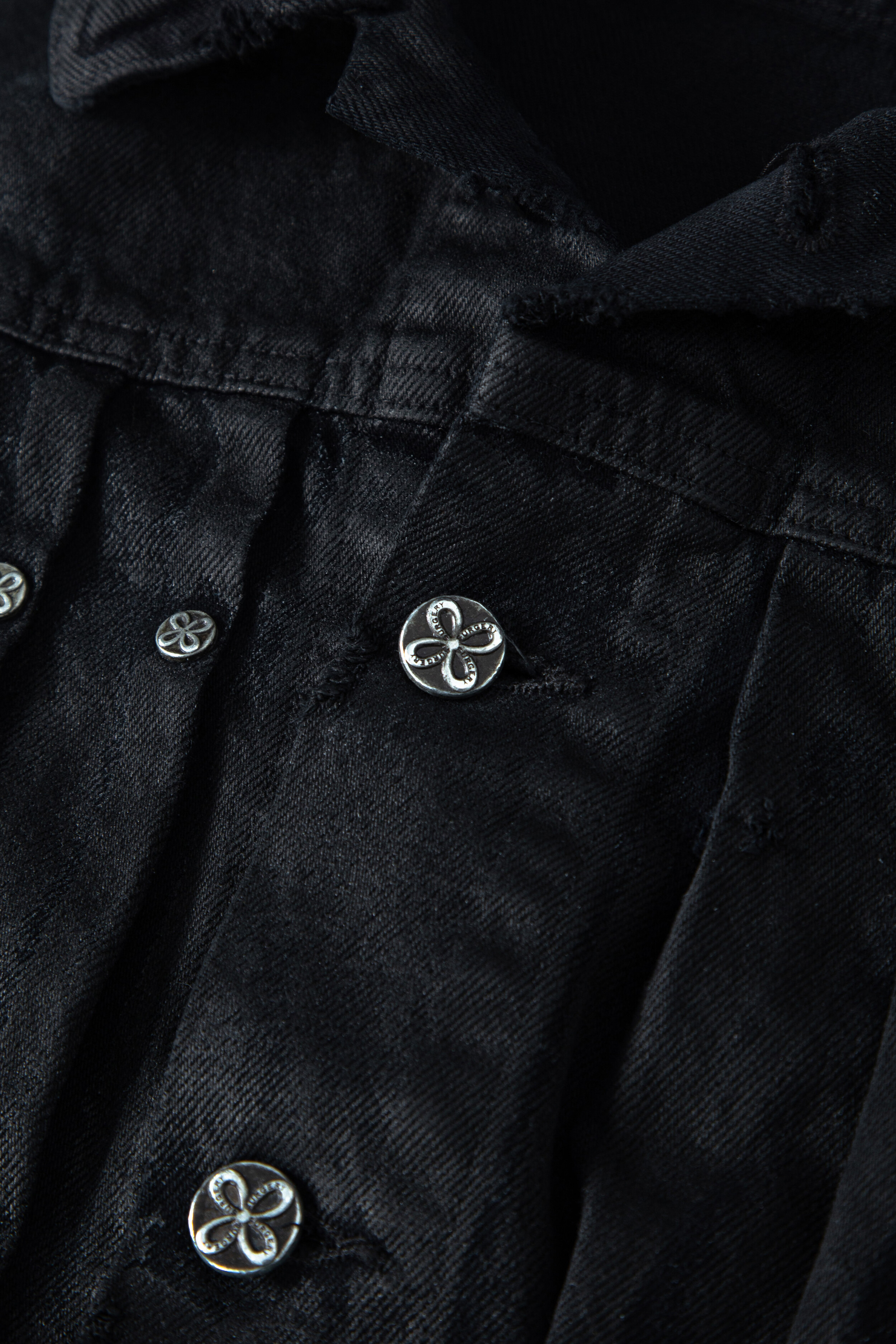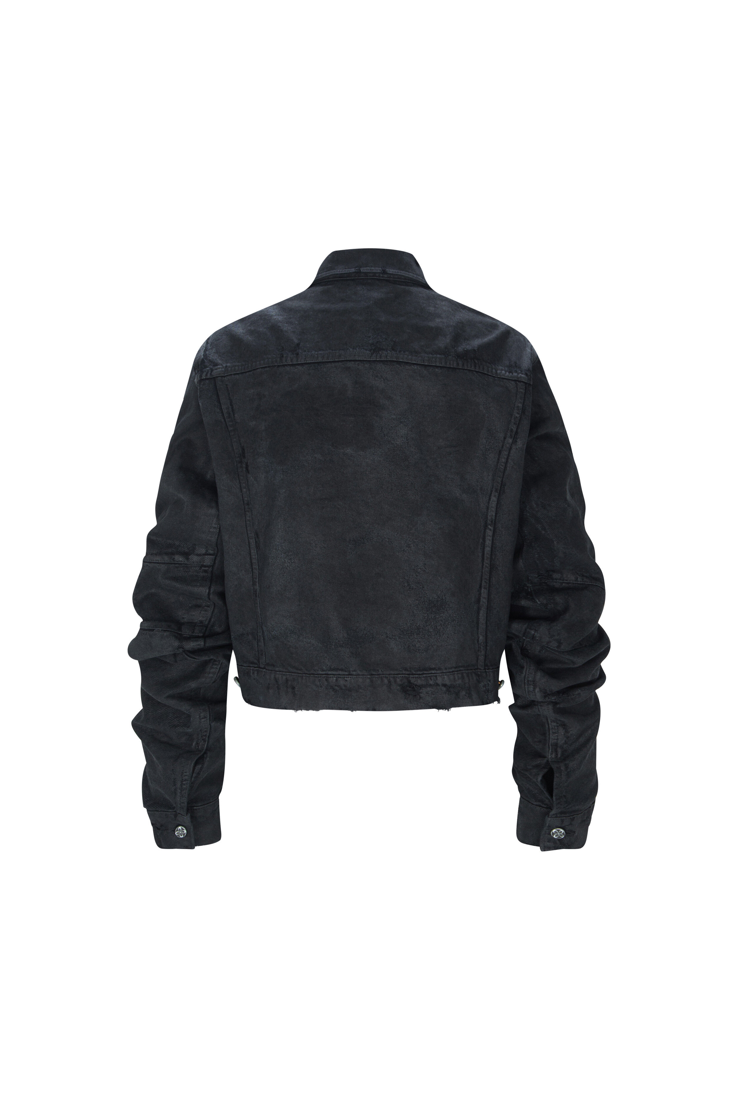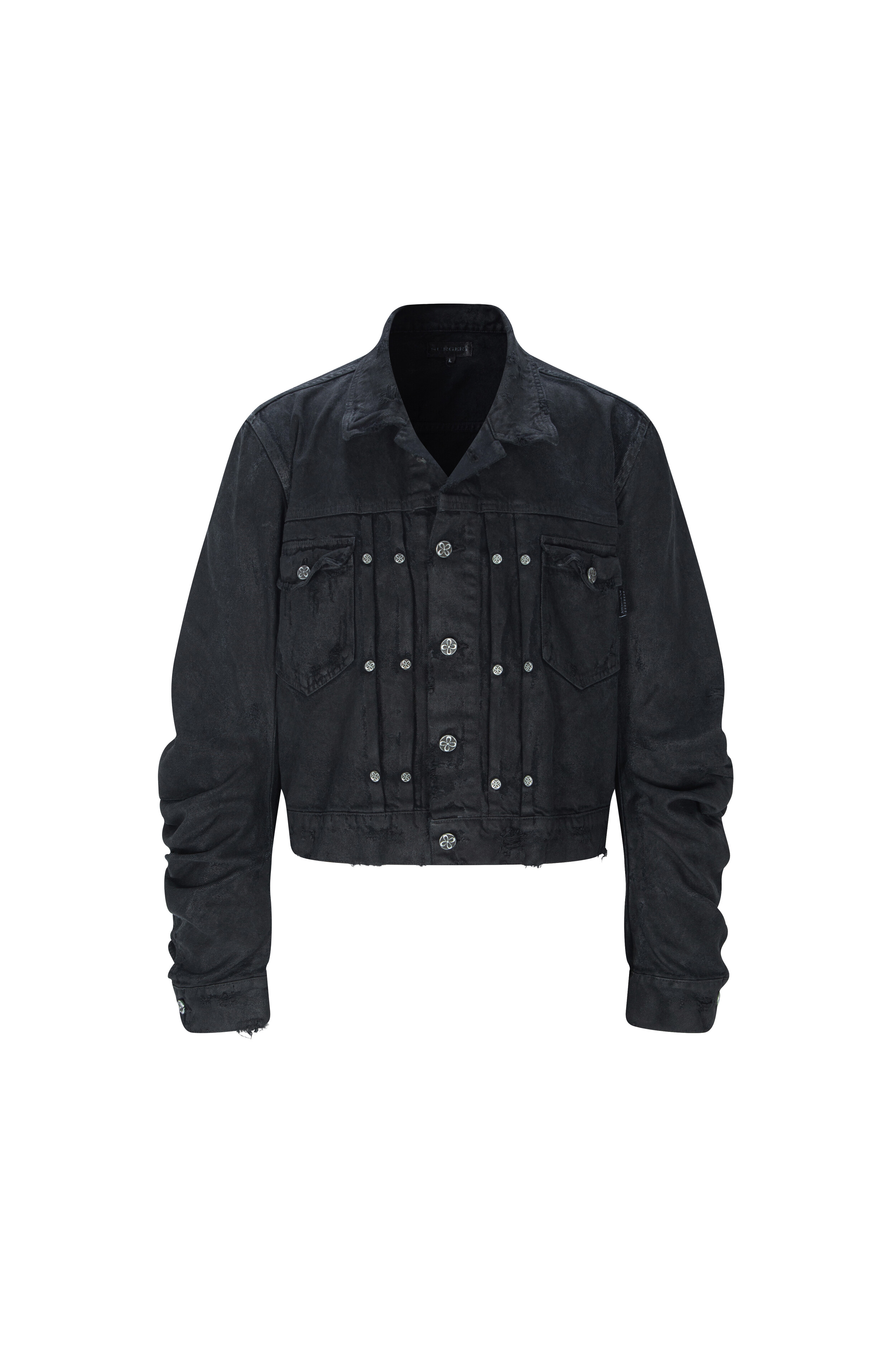 surgery curved denim trucker jacket 'wax coating'